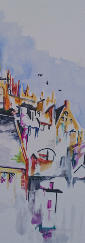 After a recent winter visit to a quite, tranquil Mont Saint Michel, I began a series of watercolour studies. Each one has a different light, but all share the majesty of the site. I always add birds to add life to the pictures.